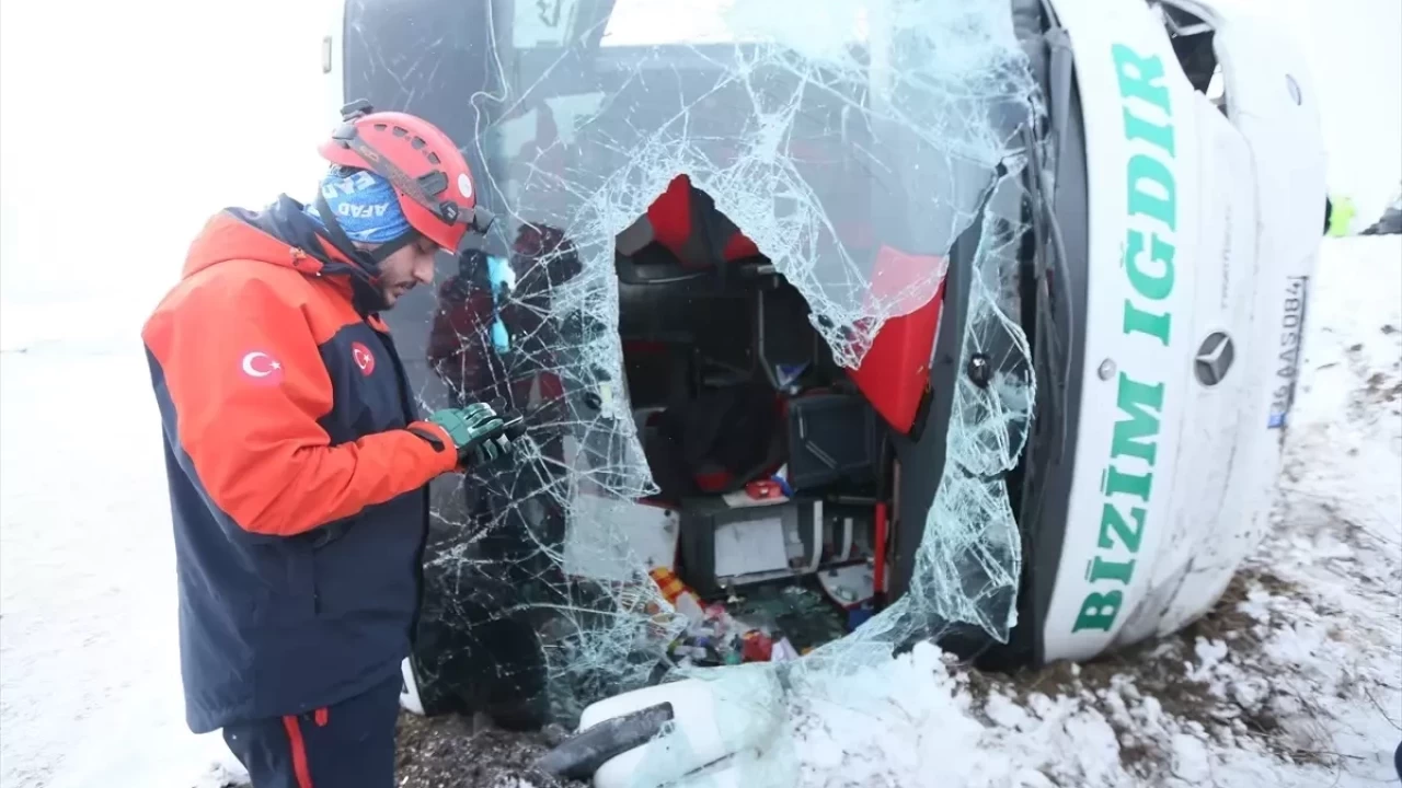 Kars'ta yolcu otobüsünün devrilmesi sonucu 23 kişi yaralandı.