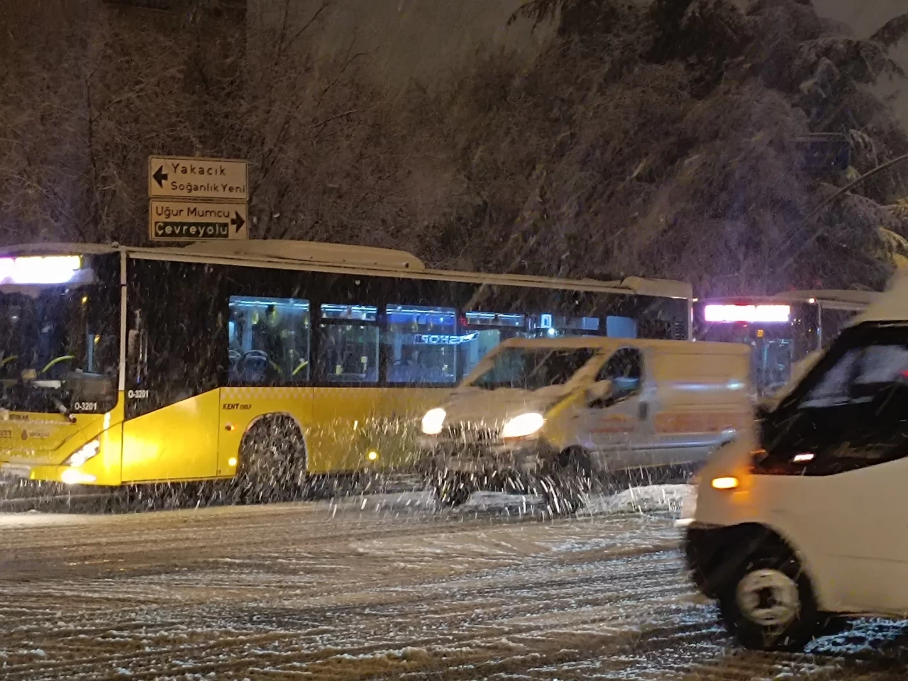 İstanbul’da sabah saatlerinden itibaren etkili olan kar Anadolu Yakası’nda şiddetini artırdı. Yolların beyaza bürünmesi bazı olumsuzlukları da beraberinde getirdi. Kartal Yakacık Meydanı’nda yoğun kar yağışı nedeniyle frenlerin tutmadığını söyleyen bir İETT otobüsü şoförü, otobüste bulunan yolcuları araçtan indirdi.