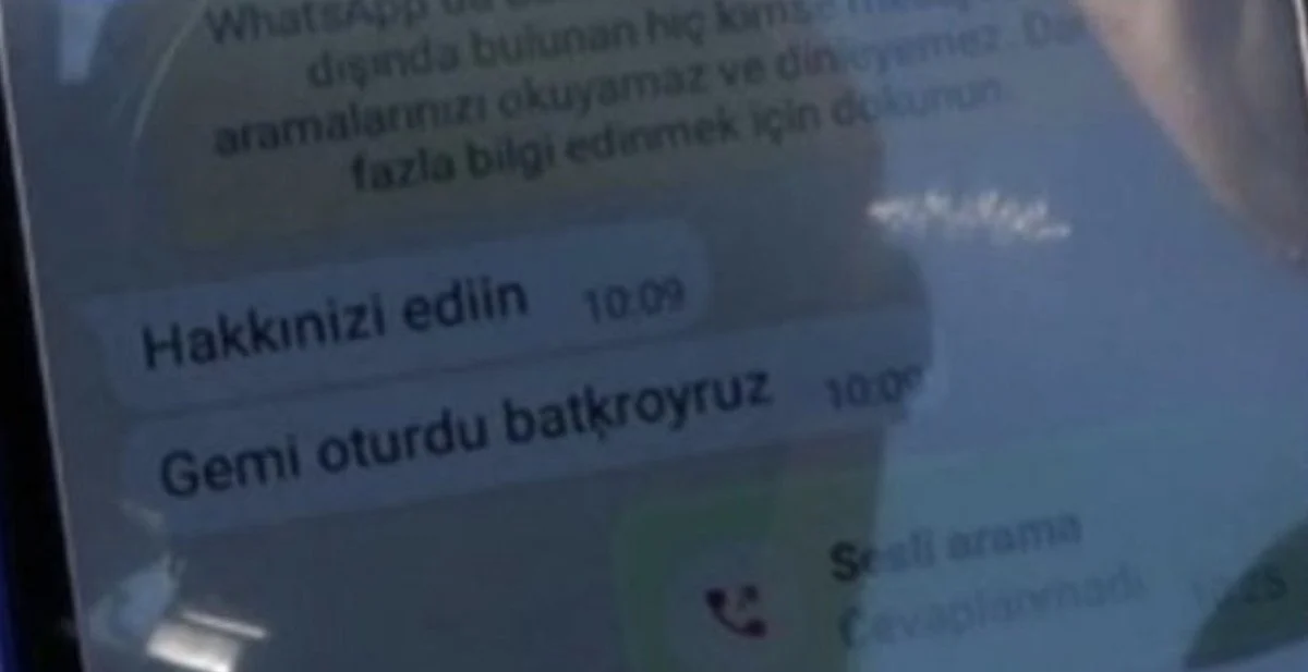 Baba Mustafa Nacar, halen kayıtlı olan mesajına bakarak göz yaşı dökerken oğlundan gelecek umutlu haberi bekliyor. Kayıp mürettebattan Mustafa Nacar'ın babasına yazdığı mesajda, yaşadıkları paniği de gösteren harf hataları dikkat çekerken mesajın alt kısmında ise baba Mehmet Nacar'ın oğluna ulaşmak için yaptığı ve cevap alamadığı çağrılar yer aldı.
