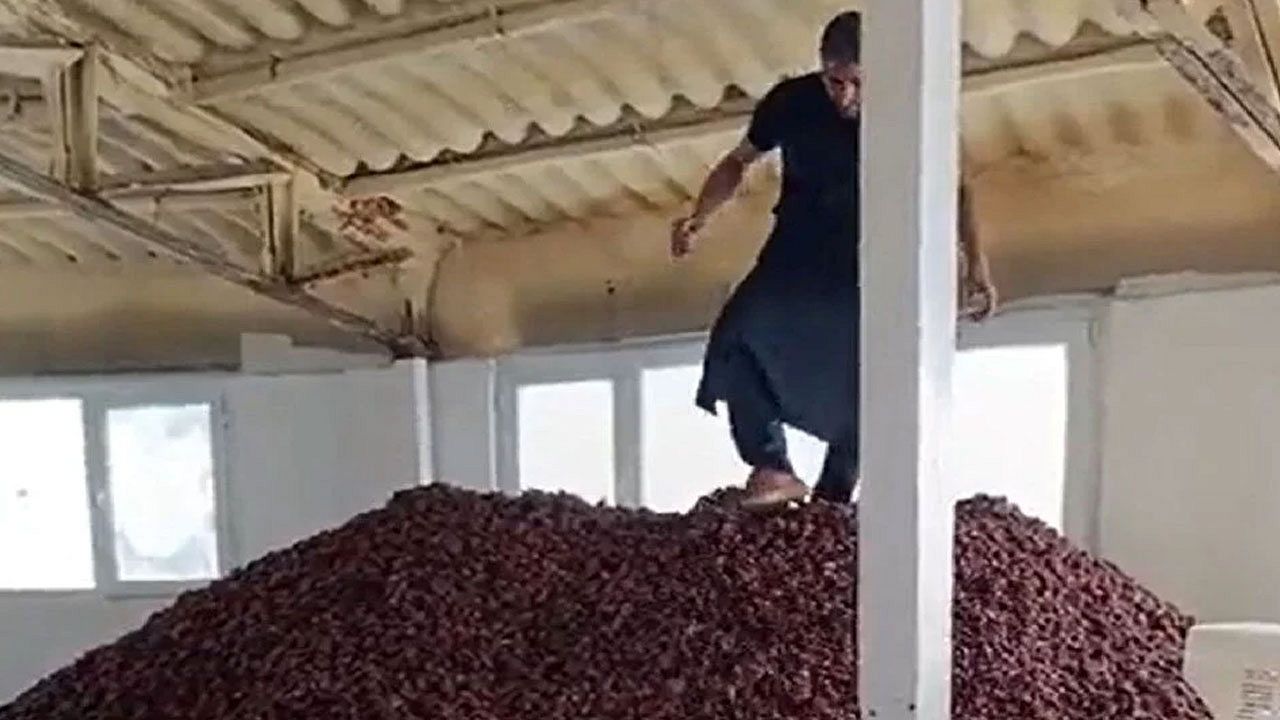 Malatya’da kayısı üreticisi Bilal M., depoda kayısıların üzerine ayakkabılarıyla çıkıp o anları sosyal medyada paylaştı.