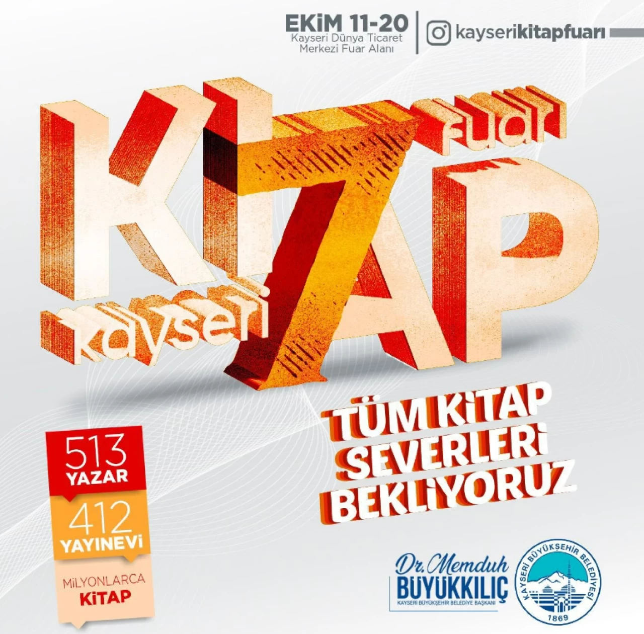 11 Ekim’de kapılarını açacak olan 7’nci Kayseri Kitap Fuarı’na tüm kitapseverlerimizi bekliyoruz..🤩📚 pic.twitter.com/e41yXlgKLh