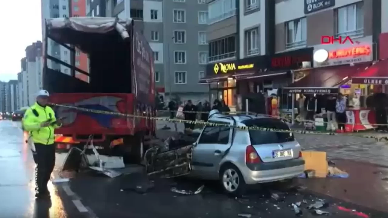 V.Ş. yönetimindeki 06 BKE 168 plakalı otomobil, bir marketin önünde park halinde olan 38 UA 378 plakalı kamyona arkadan çarptı. Çevredekilerin ihbarıyla bölgeye polis, itfaiye ve sağlık ekipleri sevk edildi.
