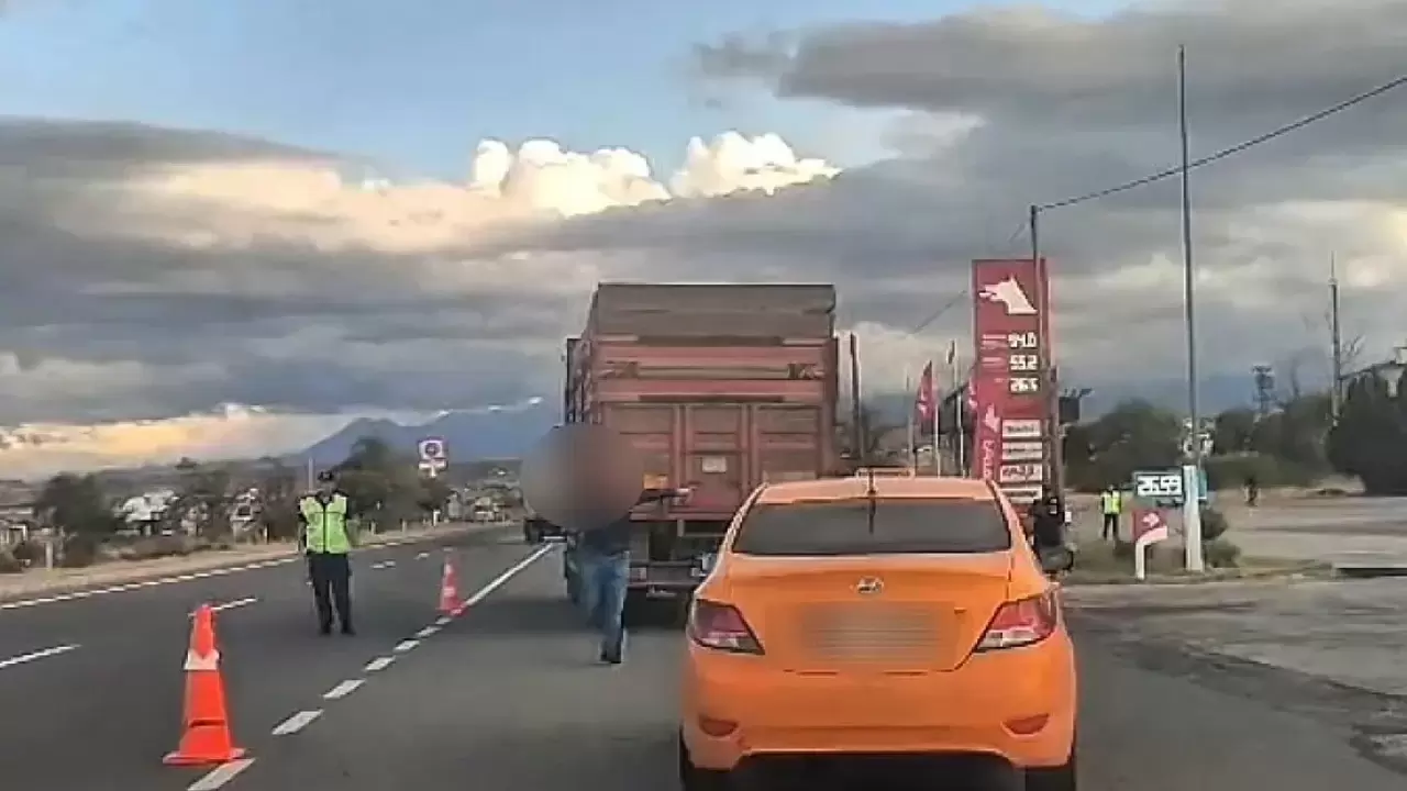 Kayseri İl Jandarma Komutanlığı ekipleri, yol kontrol noktasında bir taksiyi durdurdu.