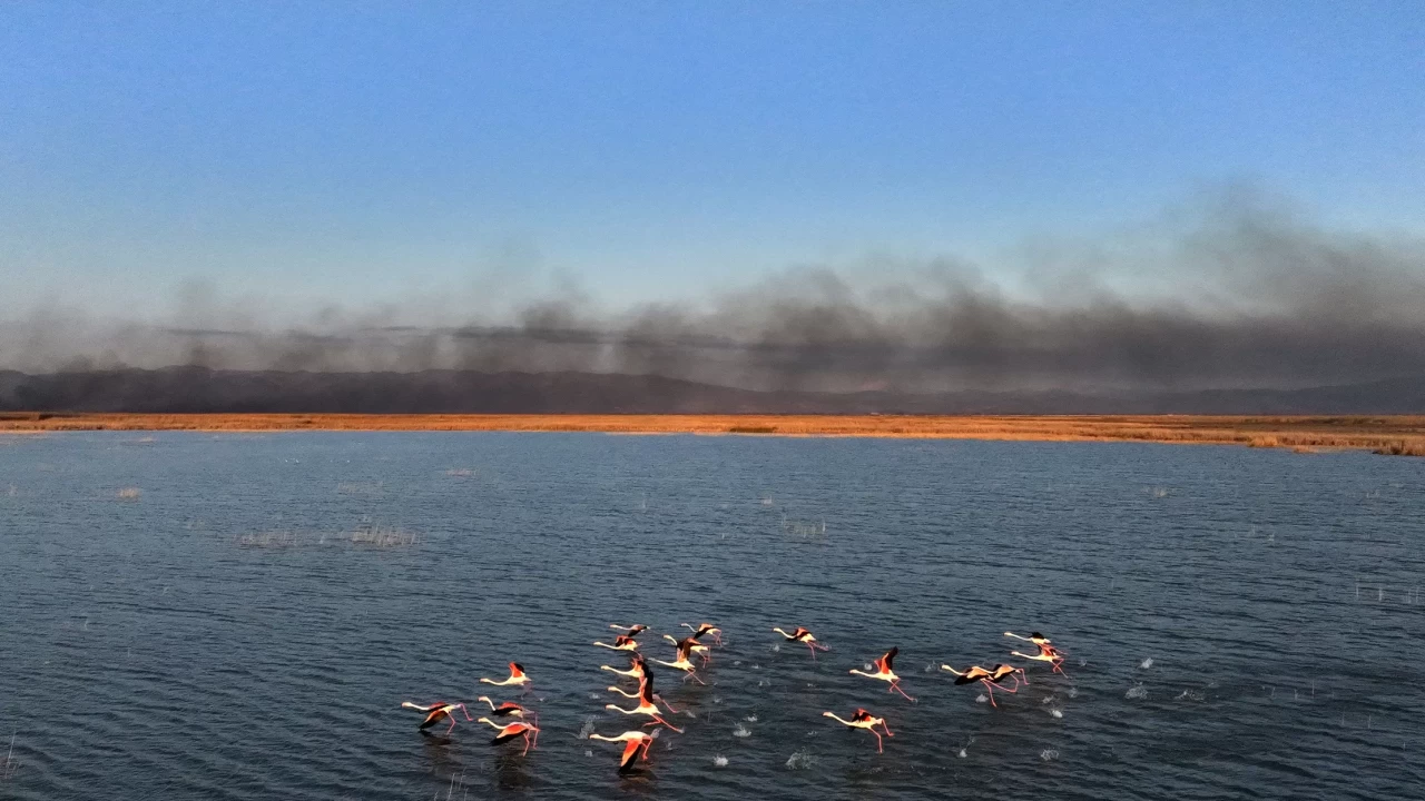 Kayseri'de "kesin korunacak hassas alan" ilan edilen Sultan Sazlığı Milli Parkı'nda çıkan yangına müdahale ediliyor.