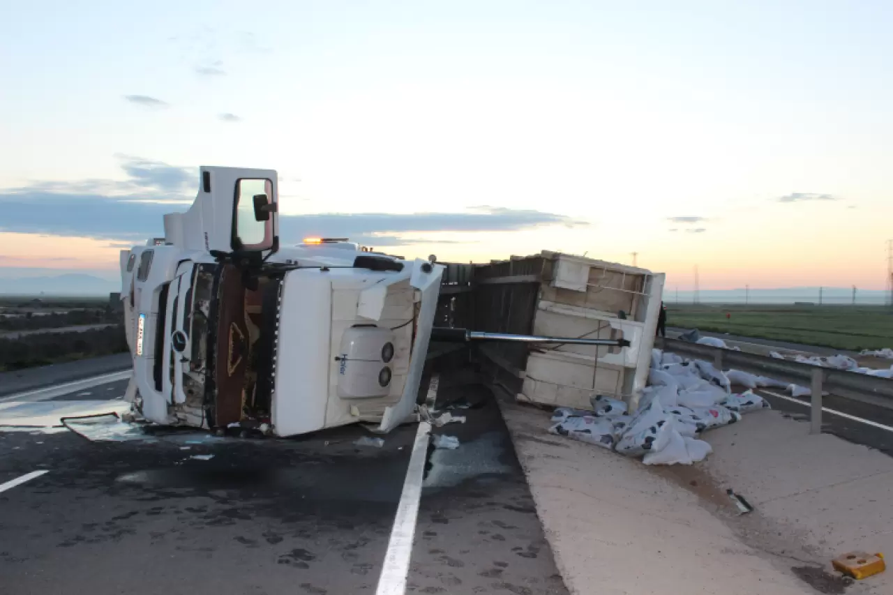 Aksaray- Konya kara yolu üzerinde meydana gelen kazada, Mustafa Ceylan’ın kontrolünü yitirdiği tır, refüje devrildi.