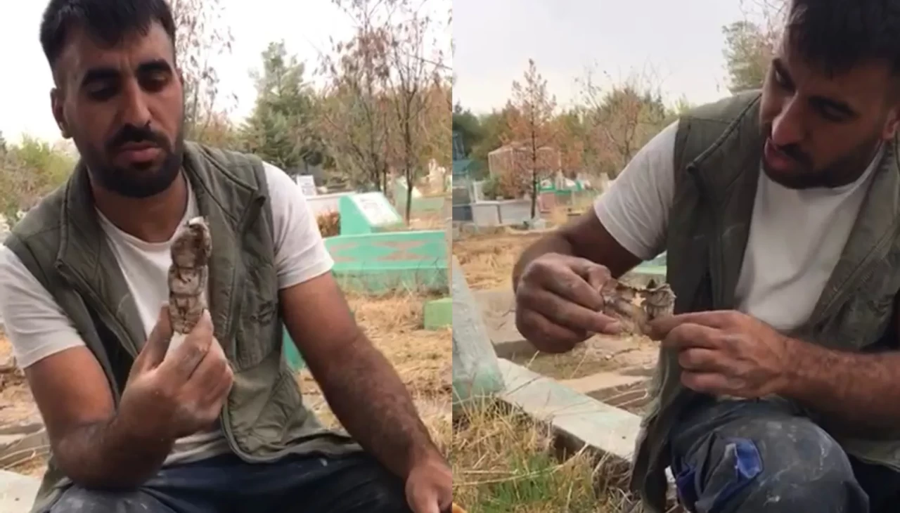 Diyarbakır merkez Bağlar ilçesinde bulunan Yeniköy mezarlığında mezar kazan Barış Karabulut, gördüğü manzara karşısında şaşırdı. Daha önce kazdığı mezarlarda büyü olduğunu düşündüğü kadın figürleri, kaşıklar, kuzu kafaları, kutulara yerleştirilen büyülerle karşılaştığını anlatan Karabulut, bu sefer kefenle sarılmış bir oyuncak bebek buldu. Bebeği eline alıp dikkatlice inceleyen Karabulut, ipleri kesip, üzerindeki bez parçalarını sökerek yaktı. Karabulut, bunun büyü olduğunu düşündüğünü söyledi.