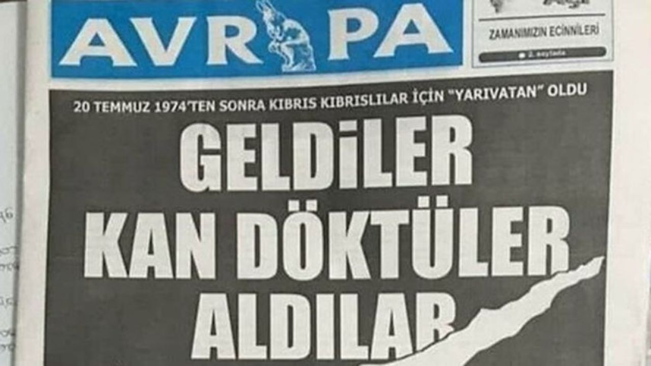 KKTC'de yayın yapan Avrupa gazetesi provokasyonlarına hız kesmeden devam ediyor. 'Geldiler, kan döktüler aldılar' manşetiyle çıkan gazete Türkiye'ye işgalci muamelesi yapıp Rumların yanında saf tutuyor. Bu gazetenin ilk provokasyonu da bu değil. Daha önce de Afrika ismiyle çıkartılan gazetenin 'Türkiye'den bir işgal hareketi daha' manşetiyle yayınlanmıştı. Bu tahriklerin arkasındaki isim ise Şener Levent. AB fonlarıyla rahatça Türk düşmanlığı yapmaya devam eden bu yapı bir milletvekili dahi çıkarabilmişti.