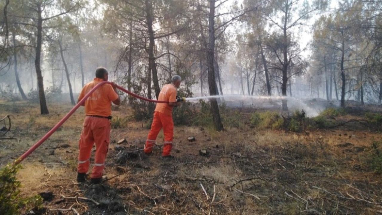 Orman Bölge Müdürlüğü bünyesindeki 75 işçi, 8 arazöz, 3 su tankı, 3 dozer ve 10 itfaiye aracıyla yürütülen çalışmalara jandarma ve belediye ekipleri de destek veriyor.