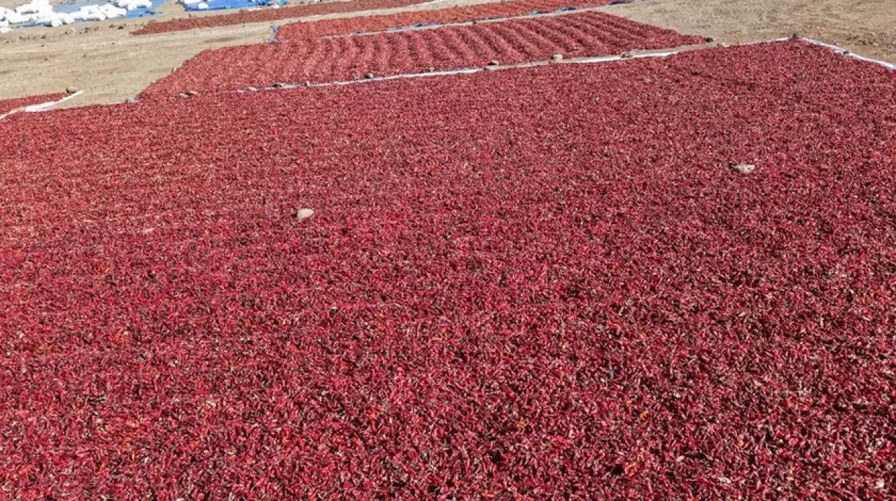 Yoğun emek isteyen süreçte çiftçiler sabahın ilk saatlerinde çalışmaya başlarken, kurutma alanları kırmızıya bürünüyor.