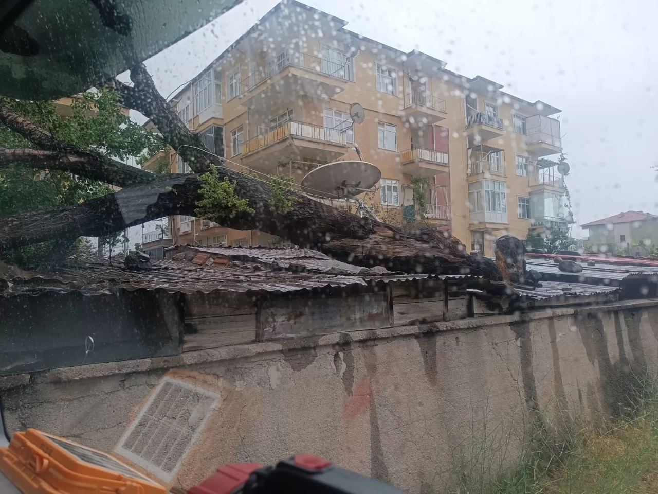 Olay, Gündoğdu Mahallesi’nde meydana geldi. Şiddetli rüzgar etkisiyle devrilen bir ağaç, yanındaki tandırlık yapının üzerine devrildi. Devrilen ağaç çatıda büyük hasara neden oldu.