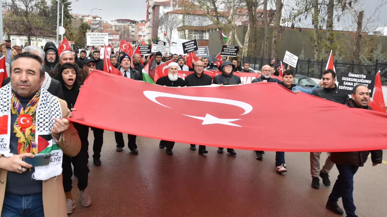 Kırıkkale Filistin'e Destek Platformu tarafından düzenlenen program kapsamında Cumhuriyet Meydanı'nda toplananlar, ellerindeki Türk ve Filistin bayraklarıyla İsrail'e tepki sloganları atarak Fevzi Çakmak Caddesi, Atatürk Bulvarı ve Hürriyet Caddesi'nden geçerek tekrar meydana geldi.