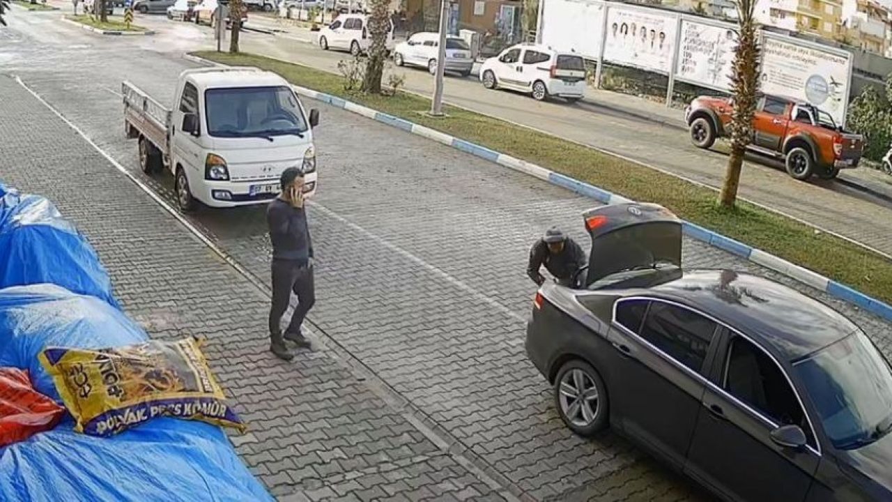 Görüntülerde, inşaatlarda boya işi yapan işveren, otomobiliyle bulvardaki yapı marketin önünde durdu. Sürücü otomobilinden inerken, çalışanı ise bagajdan çıktı. Yapı marketten ayakkabı alıp çıkan kişi ve işçisi tekrar otomobile yöneldi. İşçi yine bagaja bindi. Bulvardaki bir kişi ise işçinin girdiği bagajın kapağını kapatmasına yardım etti. O anlar ayrıca güvenlik kamerasına yansıdı.