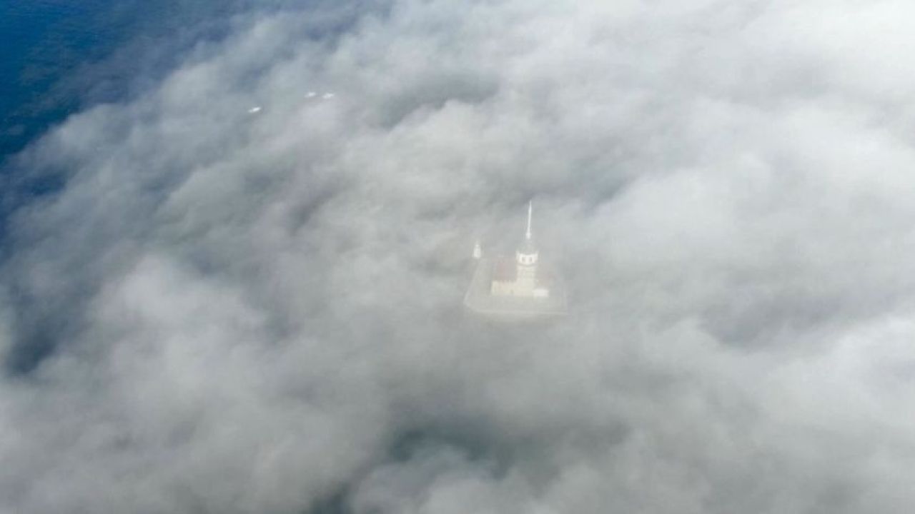 İstanbul’da öğlen saatleri itibariyle yoğun sis etkili oldu. Kentte etkili olan sis nedeniyle Kız Kulesinde adeta sisin içerisinde kayboldu. Sise teslim olan İstanbul’da oluşan masalsı görüntüler kendisine hayran bıraktı. Kız Kulesi ve çevresinde oluşan masalsı görüntüler drone ile havadan görüntülendi.