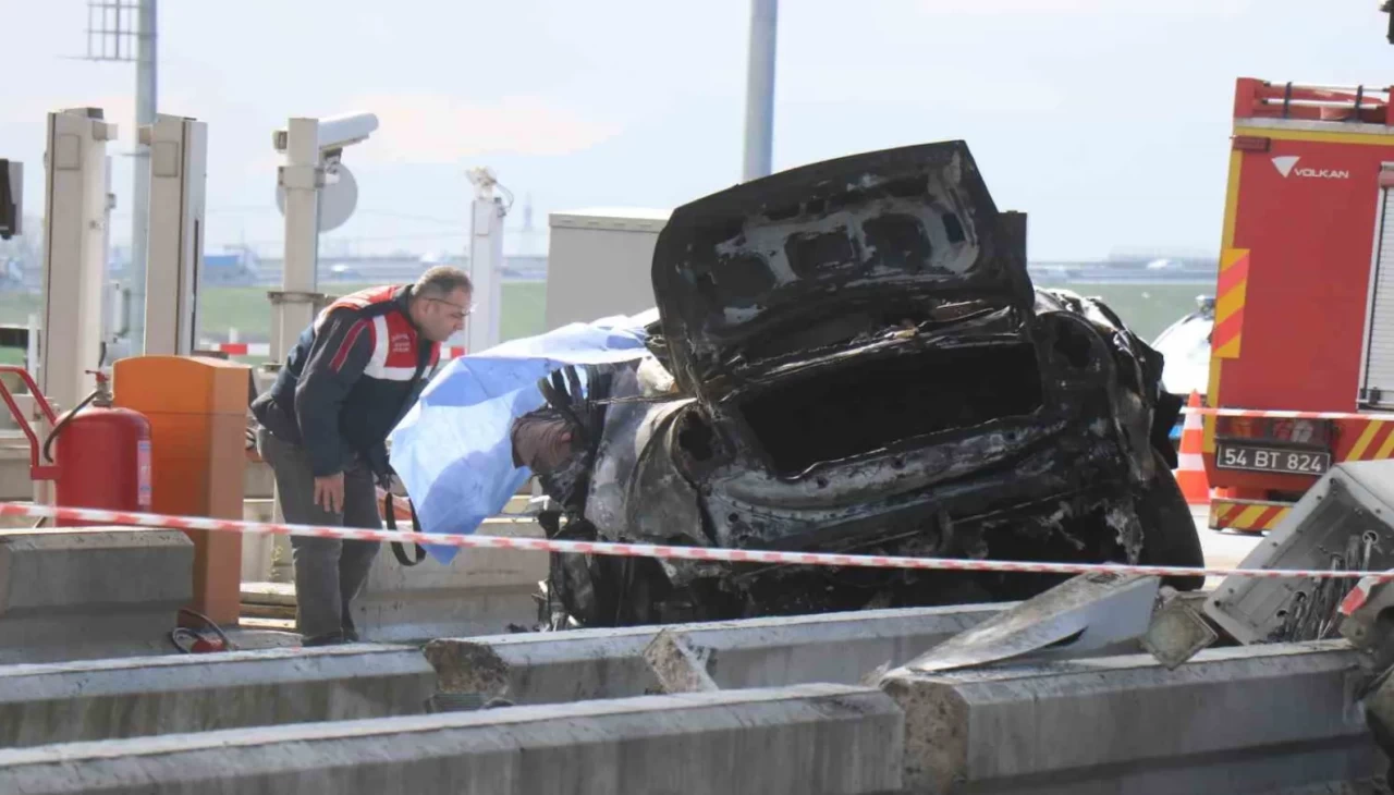 Sakarya’da Kuzey Marmara Otoyolu’nun Karasu Gişeleri mevkiinde meydana gelen kazada, seyir halindeki bir otomobil sürücüsünün direksiyon kontrolünü yitirmesi sonucu bariyerlere büyük bir hızla çarptı. Çarpmanın etkisiyle araç gişe bölümüne saplanırken, kısa süre sonra otomobilde yangın çıktı.