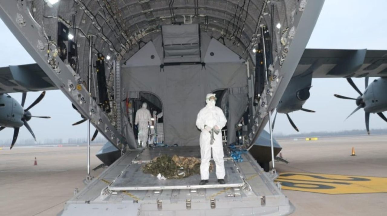 Bu kapsamda, bin biyolojik tehlike tulumu, 93 bin 500 koruyucu filtreli maske, bin tek kullanımlık koruyucu kıyafetin bulunduğu Türk Hava Kuvvetlerine ait A400M kargo uçağı, Sağlık Bakanlığınca planlanan büyük tahliye operasyonu çerçevesinde sağlık ekiplerini ve ekipmanı aldıktan sonra Çin'e hareket etmişti.
