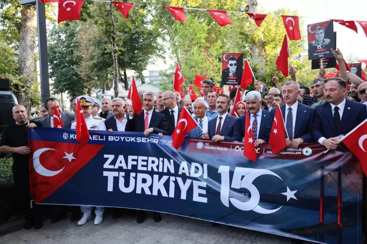 Kocaeli Valiliği, Kocaeli Büyükşehir Belediyesi ve sivil toplum kuruluşları tarafından düzenlenen 15 Temmuz Demokrasi ve Milli Birlik Günü etkinlikleri, İzmit Fevziye Cami önünde başlayan kortej yürüyüşüyle başladı. Saat 19.30'da toplanan on binlerce Kocaelili, ellerinde Türk bayraklarıyla Milli İrade Meydanı'na yürüdü. 7'den 70'e binlerce vatandaşın katıldığı yürüyüşte, "Türkiye Geçilmez" ve "Şehitler Ölmez Vatan Bölünmez" pankartları taşındı. 9 yıl önceki milli direniş ruhu, birlik ve beraberlik mesajlarıyla yeniden canlandı.