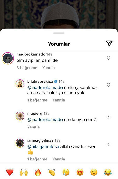 ifadesini kullandı. 'mapierg' kullanıcı adına sahip olan model ise "Dinde ayıp olmaz" şeklinde yanıt verdi. Yoruma gelen bir cevapta ise "Allah sanatı sever" yazıldığı görüldü.