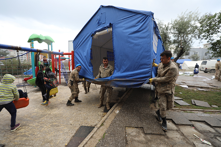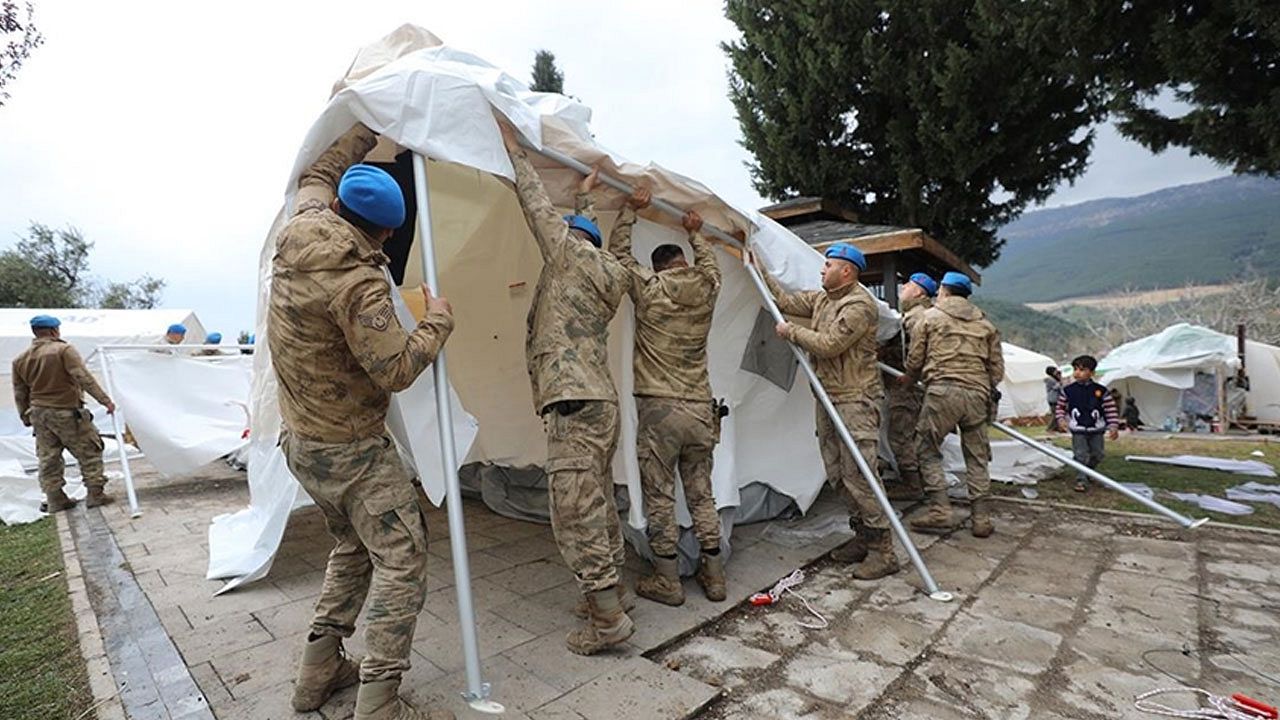 6 Şubat'taki depremlerden etkilenen iller arasında yer alan Kahramanmaraş'ta yaklaşık 300 komando, çadır kurulumu ve mevcut çadırların iyileştirilmesi çalışmalarında görev alıyor.