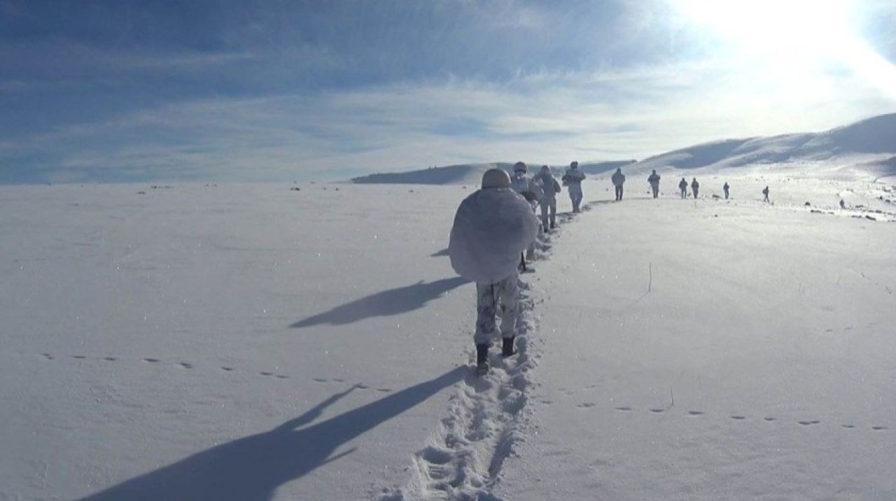 Kars'ın Cumhuriyet Köyü kırsalında yapılan 'Kış-2021 Tatbikatı' devam ediyor.