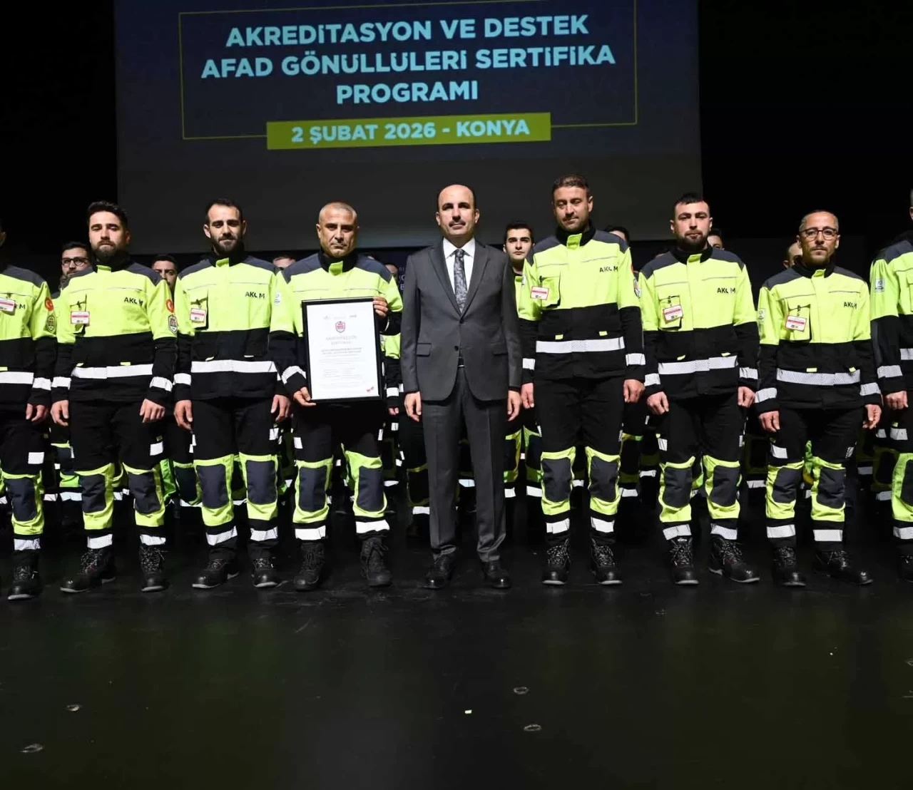 Konya Valisi İbrahim Akın ise, afetlere karşı hazırlıklı olmanın, olay anında hızlı, koordineli ve doğru müdahaleyi mümkün kılacak güçlü iş birliğini tesis etmenin hayati önem taşıdığını dile getirerek, “Bu doğrultuda Konya’mızda kentsel arama kurtarma ve afetlerde acil barınma faaliyetleri kapsamında oluşturulan, geçen yılla beraber 15 ekip, 621 kişiden oluşan ekiplerimiz, titiz bir çalışma ve eğitim sürecinin sonunda başarılı bir şekilde akredite edilmiştir. Tüm ekiplerimizin her türlü afet durumunda görev yapabilecek yüksek standartlara sahip yetkinlikte ve donanımda olduğunu özellikle vurgulamak istiyorum. Sertifika alan her bir gönüllümüzün afet anlarında toplumumuza karşı üstlendiği görevi aynı hassasiyet ve ciddiyetle sürdüreceğine yürekten inanıyor, başarılarının devamını diliyorum” dedi.