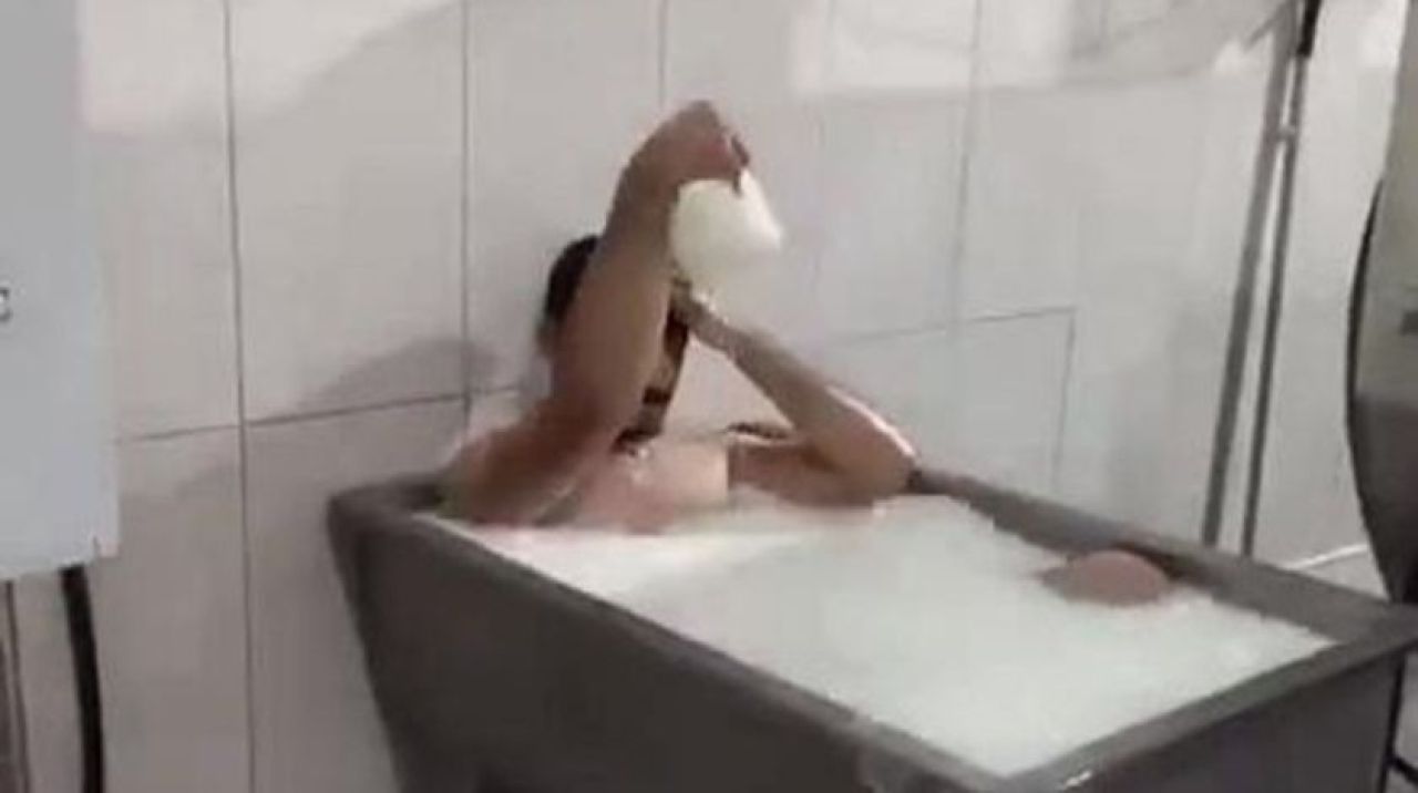 Konya'da Benefit Süt Toplama Merkezi'nde çalışan bir işçinin, kazanda banyo yaparken çekildiği görüntüler tepki çekti.