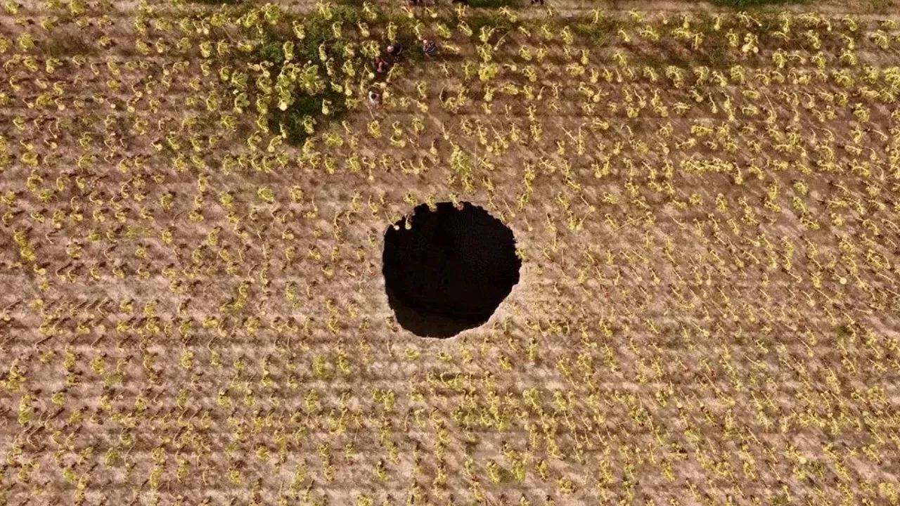 Ceylan, tarlasındaki damla sulama ekipmanlarını toplamak için arazisine geldiğinde, obruğun oluştuğunu ve bazı ekipmanların eksik olduğunu gözlemledi.