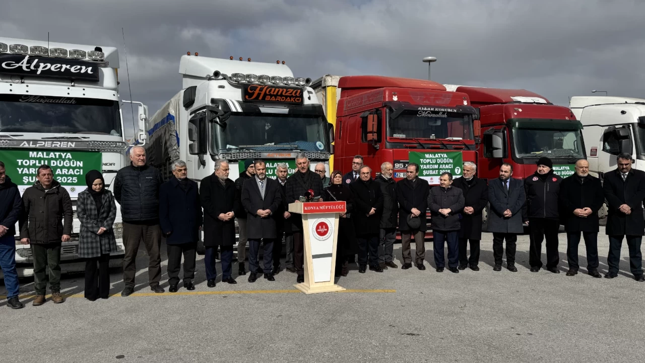 Malatya'da ihtiyaç sahibi olan 100 nişanlı çift için Konya'dan temin edilen kıyafet, halı, ev tekstili, züccaciye ve kişisel bakım ürünlerini içeren tırlar yola çıktı. Bu yardım, deprem bölgesinde evlenmeye hazırlanan çiftlere destek olmayı hedefliyor.
