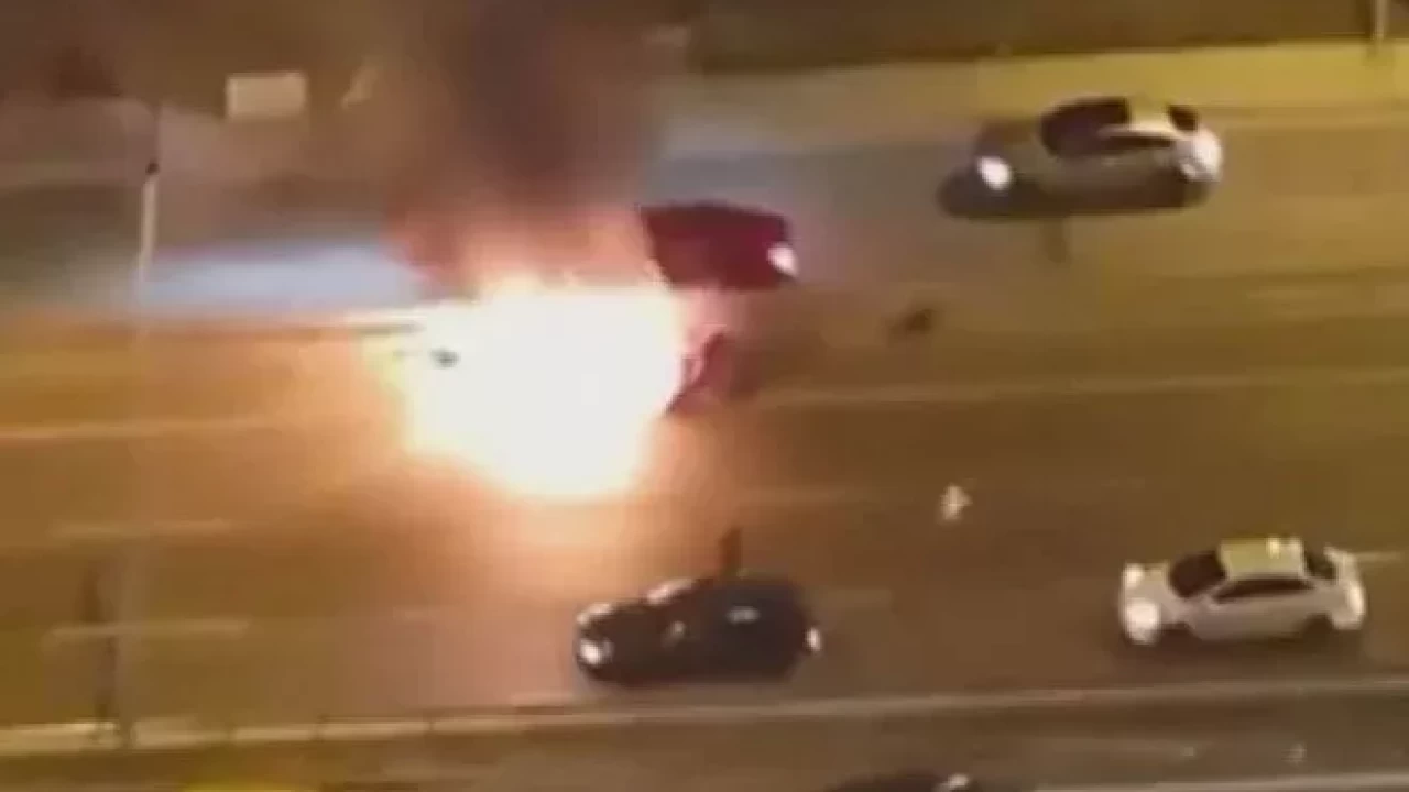 Alevler kısa sürede otomobili sardı, zaman zaman patlamalar meydana geldi.