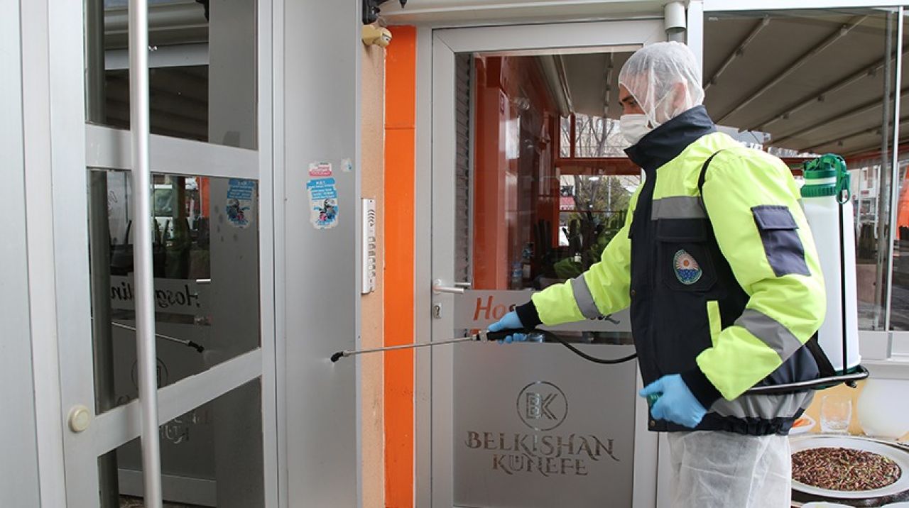 Gölbaşı ve İncek genelinde korona virüsü tedbirleri kapsamında yalnızca sokaklarda değil, insanların yoğun olarak geçtiği caddelerde, duraklarda, dükkân önlerinde ve parklarda dezenfeksiyon çalışmaları yapılıyor.