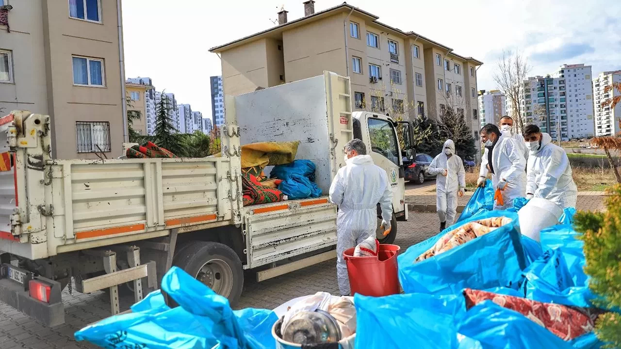 Kadın kontrol için hastaneye götürülürken, çöpler evden çıkarıldı. Bir kamyon çöpün çıktığı evde daha sonra ilaçlama ve dezenfekte işlemi gerçekleştirildi.