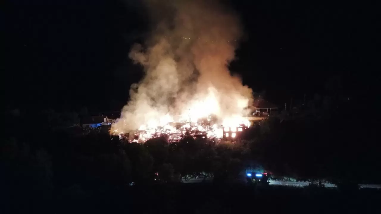 Çok sayıda itfaiyenin müdahale ettiği yangında bazı ev ve samanlıkların yanı sıra bir traktör yandı.