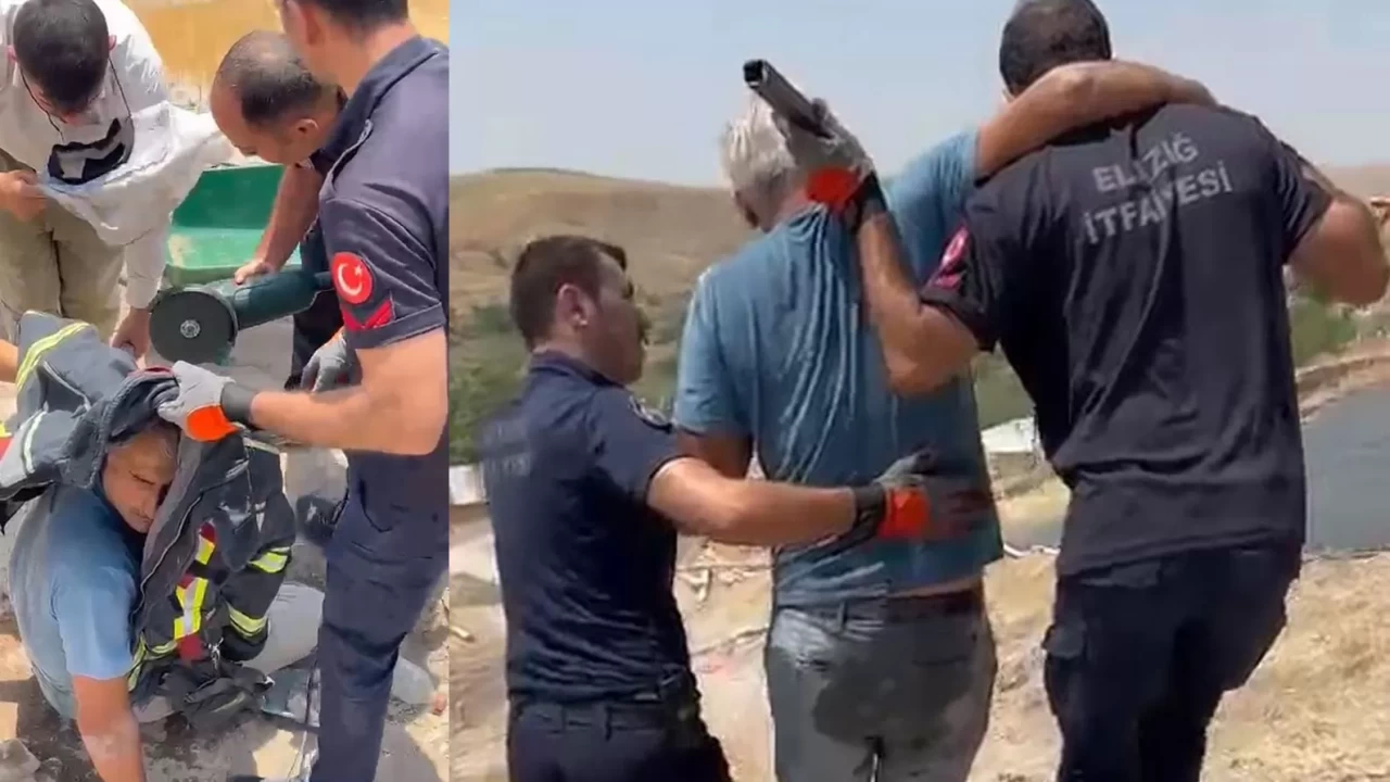Elazığ'da çıkan rüzgarda devrilen demir profillerden biri, bir vatandaşın kulağına saplandı. Saplanan demirin bir kısmı olay yerinde itfaiye ekipleri tarafından kesilirken geri kalanı ise hastanede çıkartıldı.