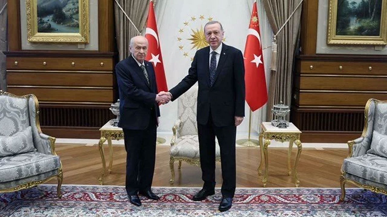 Cumhurbaşkanı Recep Tayyip Erdoğan, Cumhurbaşkanlığı Külliyesi'nde MHP Genel Başkanı Devlet Bahçeli'yi kabul etti.