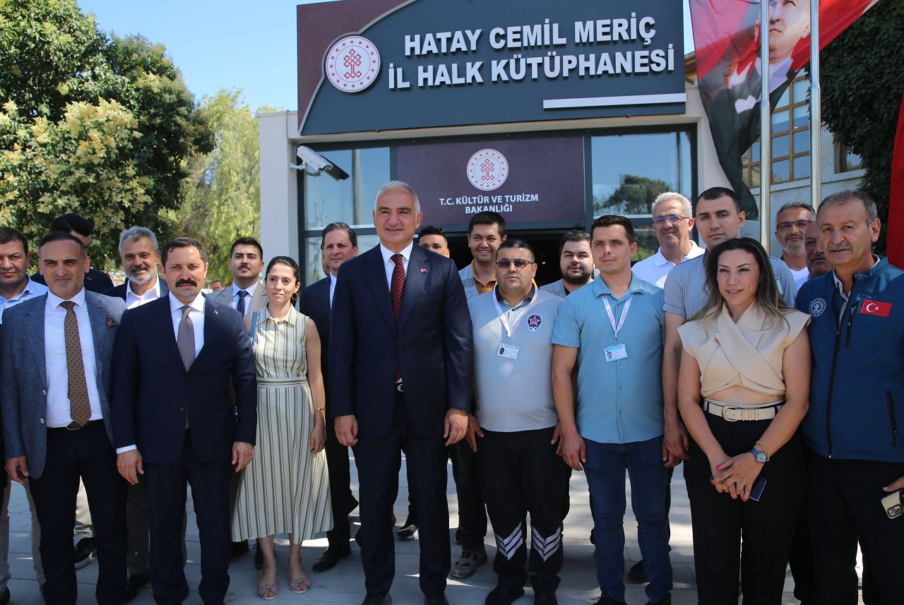 Bakan Ersoy, depremlerde hasar alan müzeden dönüştürülen Hatay Cemil Meriç İl Halk Kütüphanesi'ni de ziyaret ederek, burada öğrencilerle görüştü, onlara çeşitli hediyeler verdi.