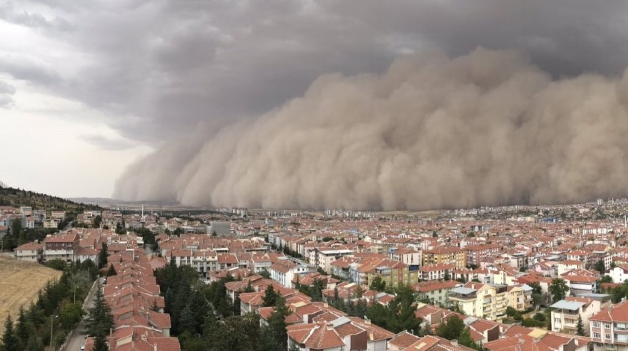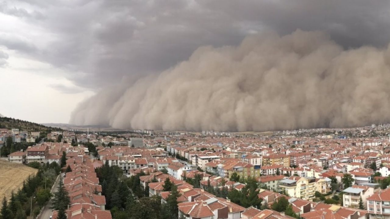 Polatlı'da dün öğle saatlerinde şiddetli rüzgarla birlikte kum fırtınası meydana geldi. Fırtına nedeniyle gökyüzünü toz bulutu kaplarken, ilçede panik oluştu. Sokakta bulunan vatandaşlar ev ve kapalı mekanlara koşarak, toz buluntudan kaçınmaya çalıştı. Görüş mesafesini düşüren fırtınada, ev ve iş yerlerinin çatıları uçtu, bazı ağaçlar devrildi.