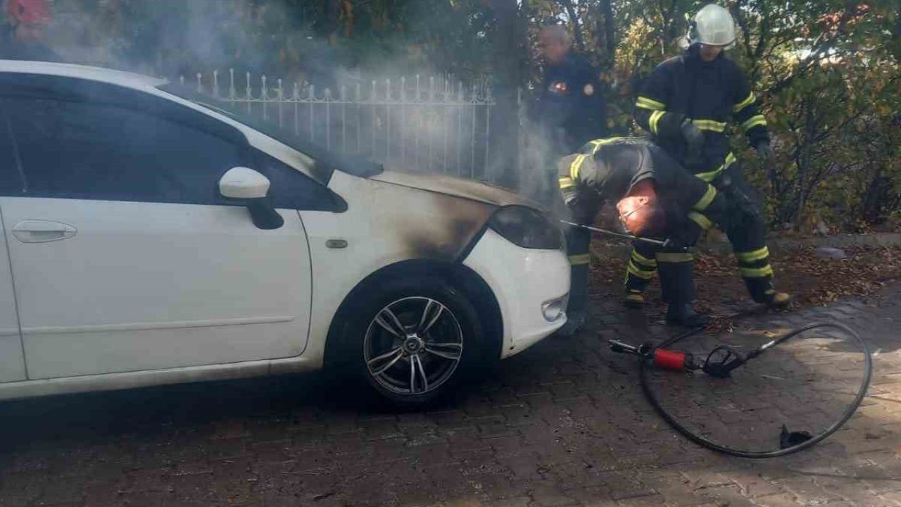 Bir süre sonra park halindeki aracın motor bölümünden duman geldiğini gören vatandaşlar, durumu 112 Acil Çağrı Merkezine bildirdiler.