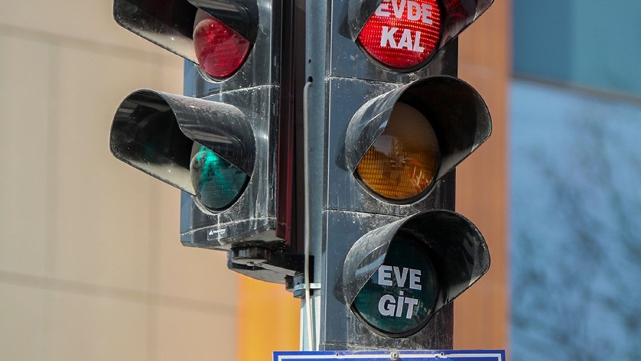 Vatandaşlarımızın evde kalması gerektiğine dikkat çekmek isteyen Kütahya Belediyesi, Trafik ışıklarının kırmızı olanlarına 'Evde Kal', yeşil olanlarına ise 'Eve Git' yazarak Kütahyalıları evde kalmaları konusunda uyarıyor.