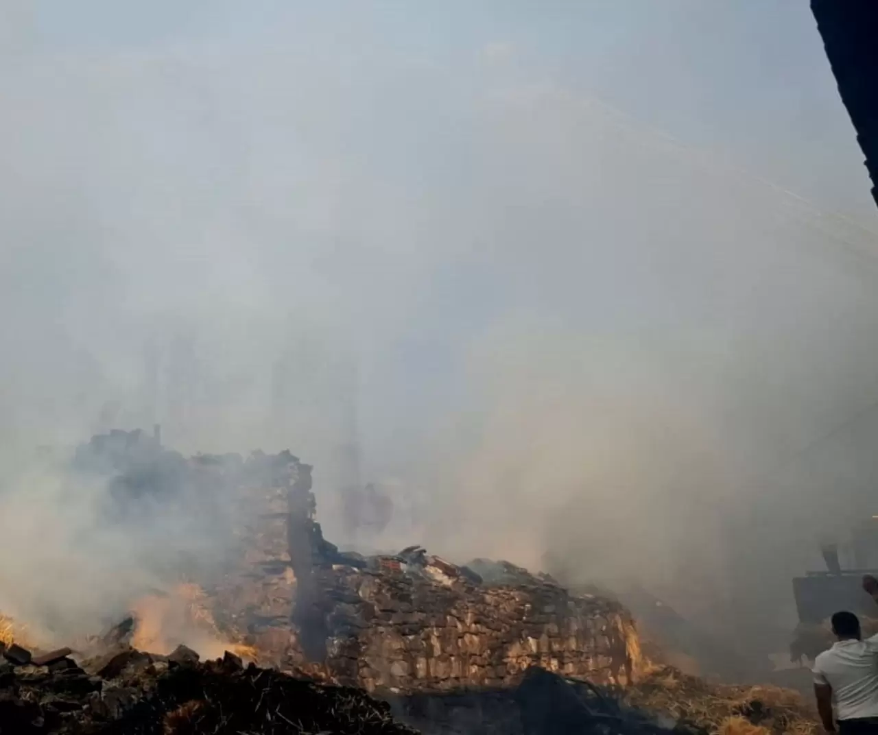 Ekiplerin yaklaşık 4 saatlik çalışmasıyla söndürülen yangında, 2 ev ve 4 samanlık kullanılamaz hale geldi.