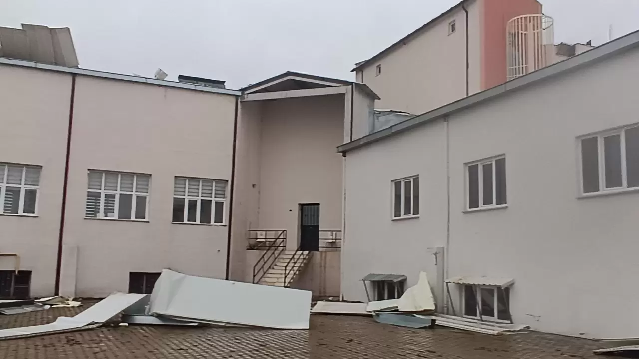 Kent merkezindeki Hürriyet Mahallesi Hilmi Mercimekloğlu Caddesi üzerinde bulunan erkek öğrenci yurdunun çatısı, rüzgarın etkisiyle uçtu. Çatıdan kopan parçalar, yurt yerleşkesinde park halinde bulunan 4 araçta maddi hasara yol açtı.