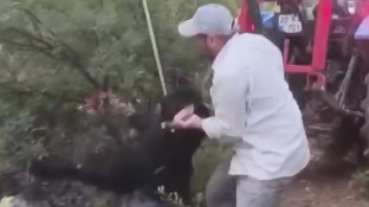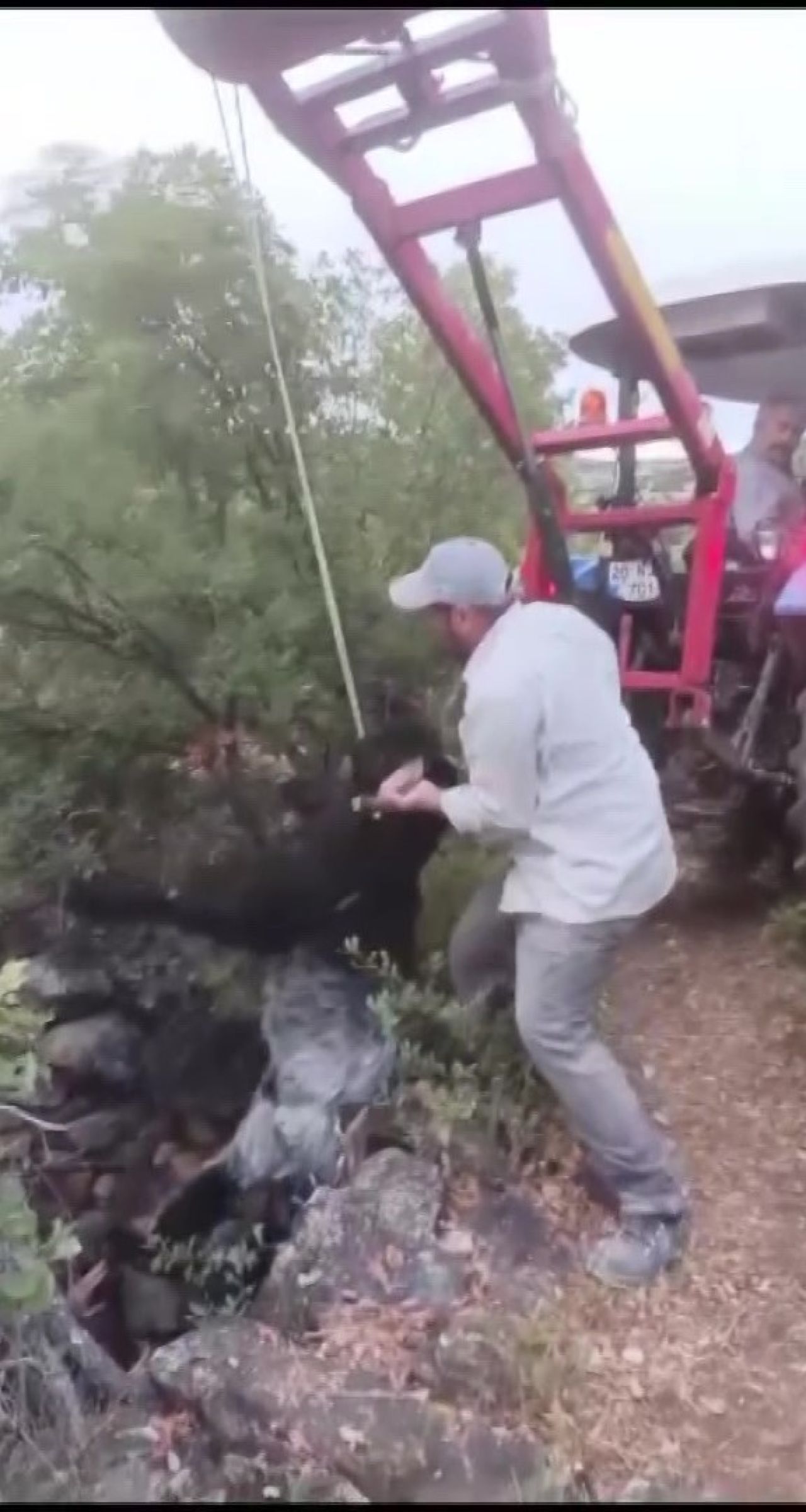 Keçiyi kuyudan çıkaramayan Demirhan komşularından ve mahalleliden yardım istedi. Bölgeye traktör ve kepçeyle yardım için gelen mahalleli, keçiyi kurtarmak için çalışma başlattı. İple kuyuya sarkan keçinin sahibi, 1 saatlik çalışmanın ardından traktörün arkasında bulunan kepçe yardımıyla keçiyi halata bağlayarak keçiyi sağ salim kuyudan çıkardı.