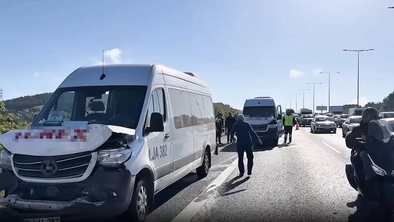 Otoyolun Ümraniye mevkii Edirne istikametinde seyreden 3 servis aracıyla 5 otomobil çarpıştı.