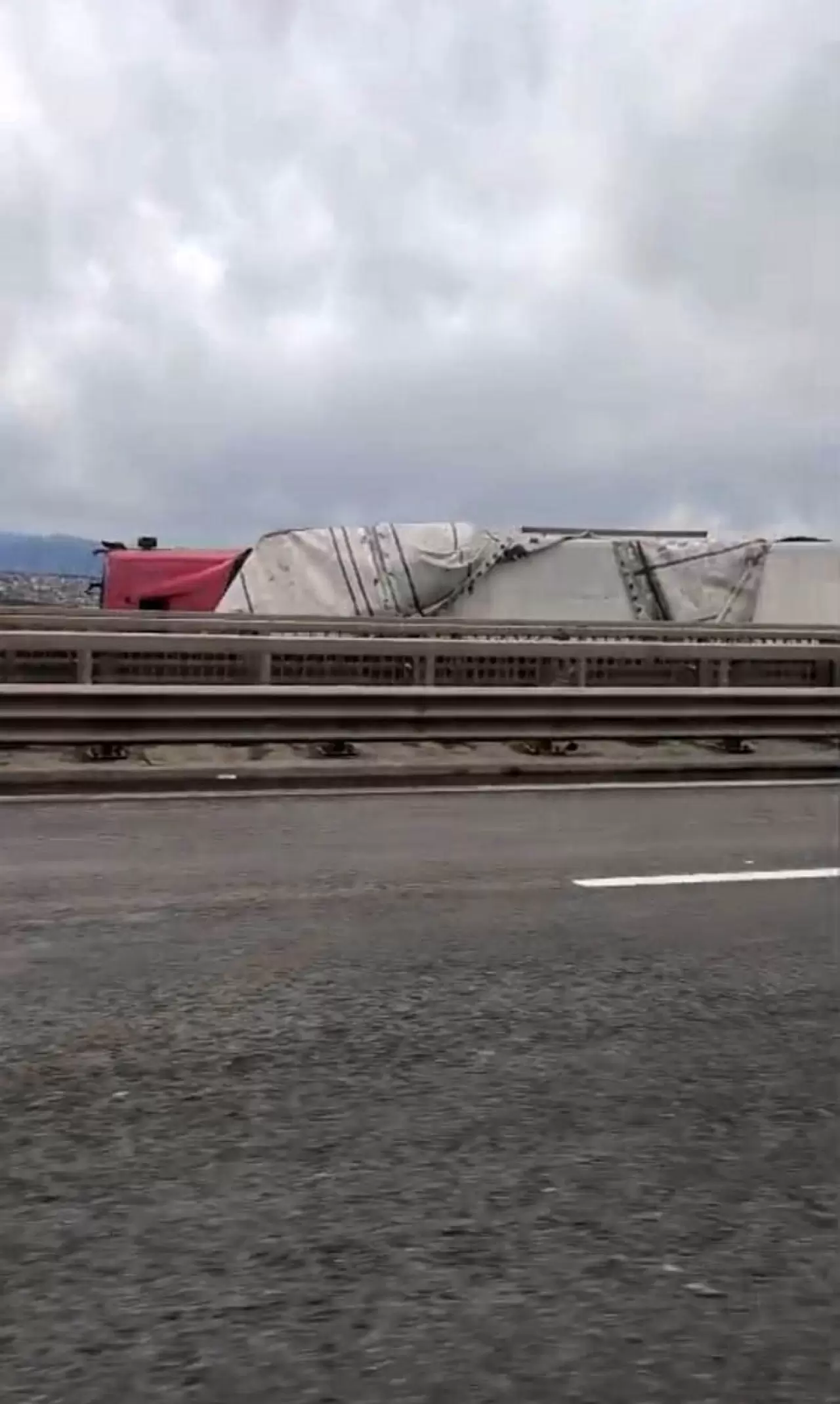 Kuzey Marmara Otoyolu'nun Kocaeli kesiminde etkili olan şiddetli fırtına nedeniyle seyir halindeki 2 tır devrildi.