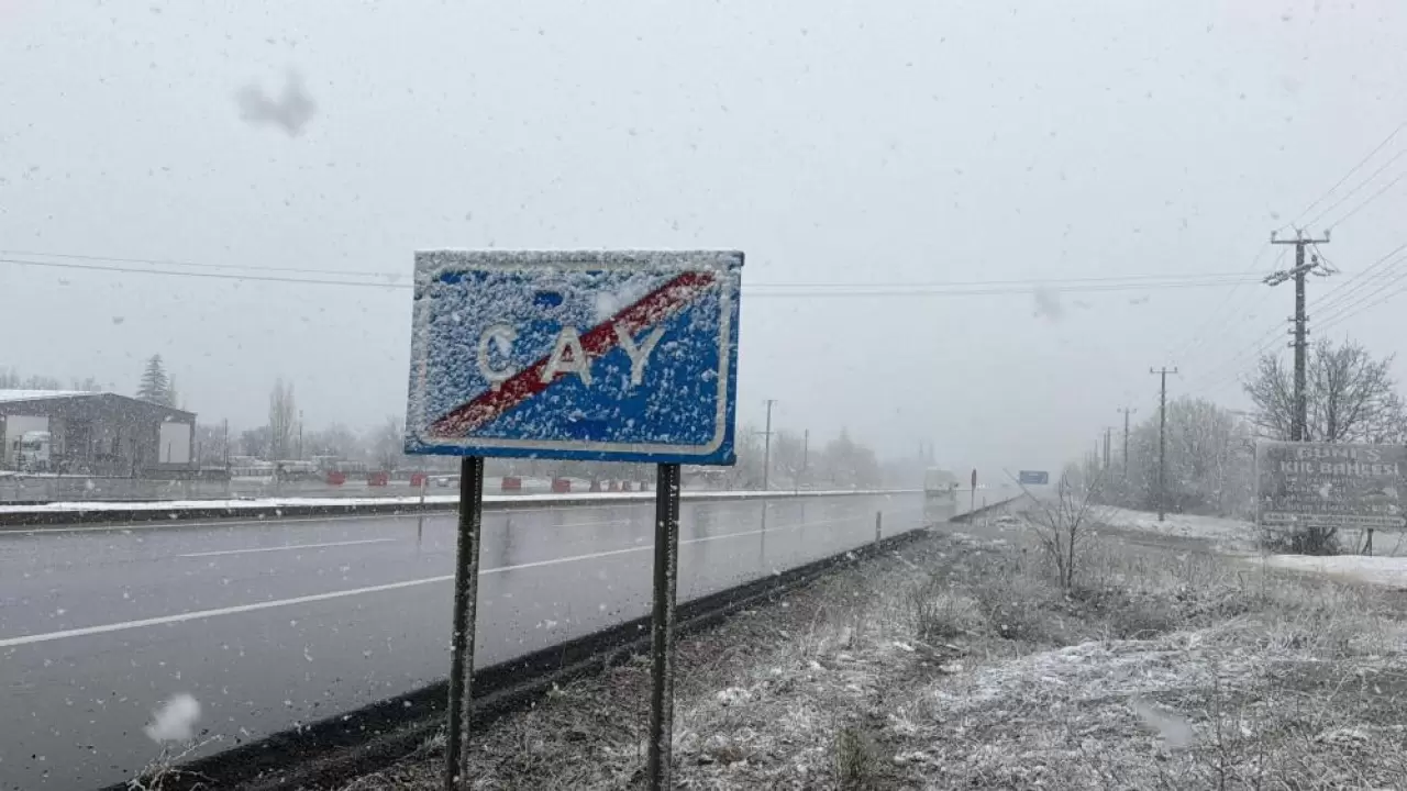 Kentte karla karışık etkili olan yağmur Çay ilçesinda kar yağışı kendini gösterdi.