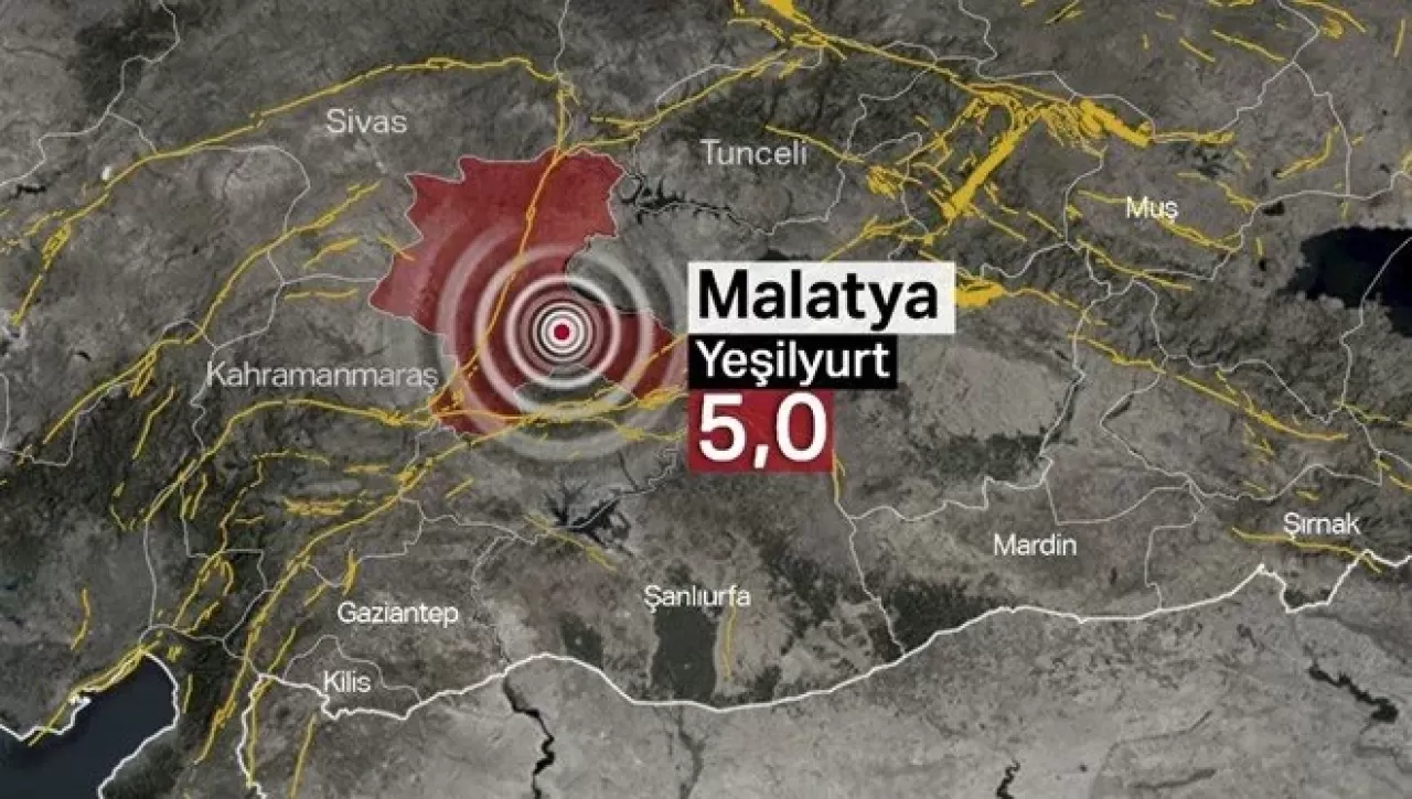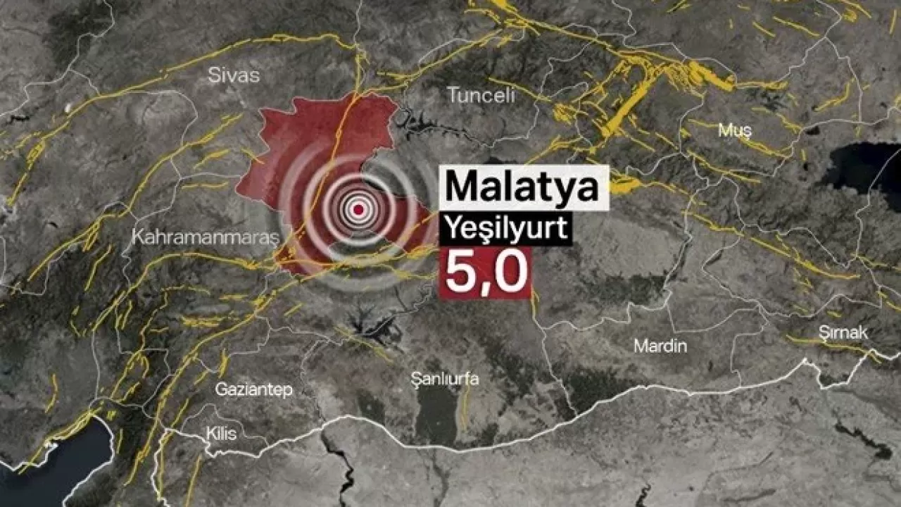 Afet ve Acil Durum Yönetimi Başkanlığından (AFAD), edinilen bilgiye göre Malatya'nın Yeşilyurt ilçesinde saat 08.35'te 5 büyüklüğünde deprem meydana geldi.