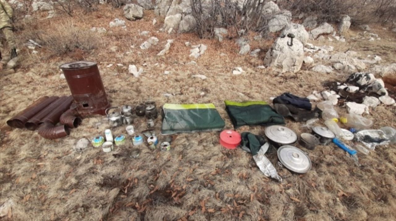 Aramalarda, kayaların arasına gizlenmiş bölücü terör örgütü mensuplarınca 2014-2015 yıllarında kullanıldığı değerIendirilen 2 uyku tulumu, 1 eşofman altı, 8 kullanılmış kışlık çorap, 3 yatmak için kullanılan mad parçaları, 27 kas gevşetici ilaç, 2 pet şişe içerisinde silah temizlemede kullanılan yağ, 200 metrelik ip makarası, 30 metrelik plastik ip, 1 soba, 7 soba borusu, 199 muhtelif mutfak araç ve gereçleri, 57 boş konserve kutusu, 13 boş su kabı, 3 içi dolu sıvı bulaşık deterjanı ele geçirildi.