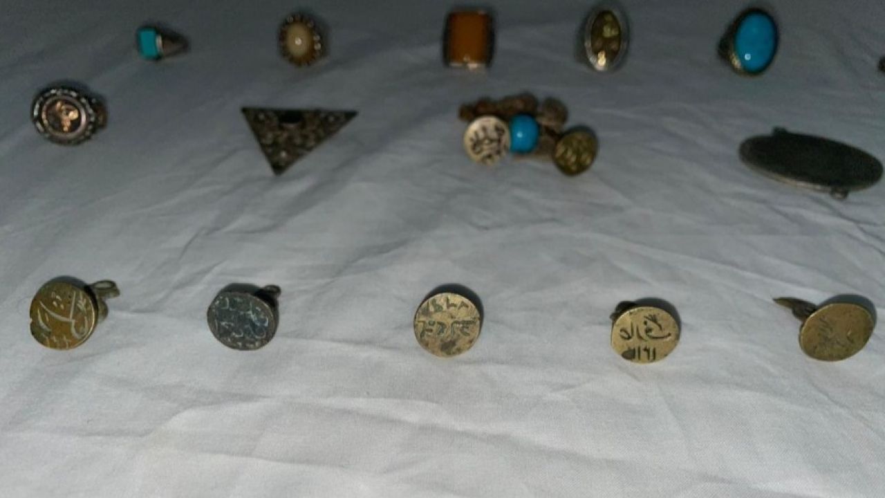 Şüphelinin üzerinde yapılan aramada Osmanlı dönemine ait olduğu değerlendirilen 11 mühür, 2 kolye ucu, 8 yüzük ve 2 kolye ele geçirildi.
