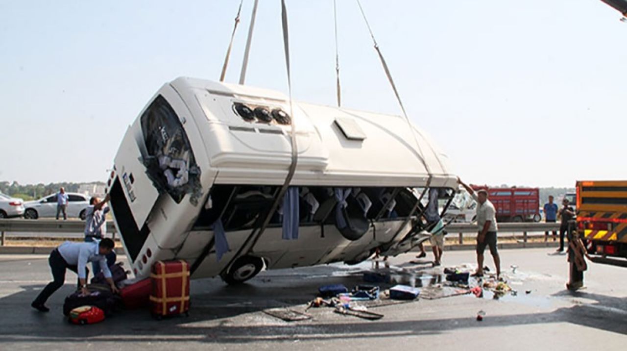 Kaza, 15.00 sıralarında D 400 Karayolu Manavgat Köprüsü yakınlarında meydana geldi. Alanya ilçesinden aldığı Rus turistleri Antalya Havalimanı'na götürmek için yola çıkan Yavuz Günday yönetimindeki 03 ABB 808 plakalı tur midibüsü, bariyerlere çarparak devrildi.