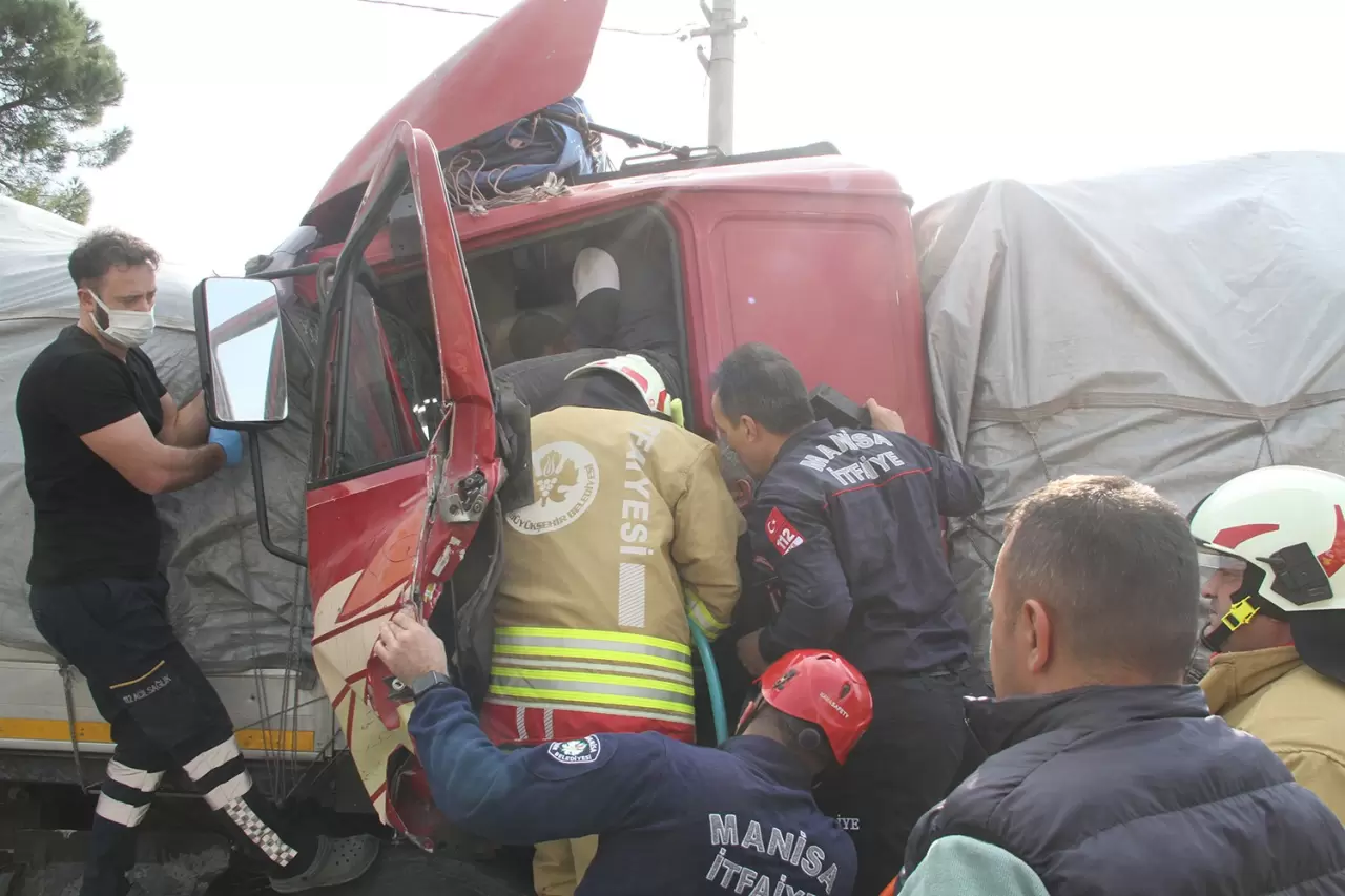 Çarpmanın şiddetiyle 35 NKU 23 plakalı tır sürücüsü olan Harun A., tırın kupa kısmında sıkışarak yaralandı. Kazayı görenlerin ihbarı üzerine olay yerine ambulans, itfaiye ve polis ekipleri sevk edildi. Kısa sürede olay yerine gelen Manisa Büyükşehir Belediyesi'ne bağlı Kula İtfaiye Amirliği ekipleri, tırın kupasında sıkışan yaralıya müdahale etti. Sıkıştığı yerden itfaiye ekiplerince çıkarılan Harun A., ambulansla Kula Devlet Hastanesi'ne kaldırıldı. Yaralının hayati tehlikesinin bulunmadığı öğrenildi.