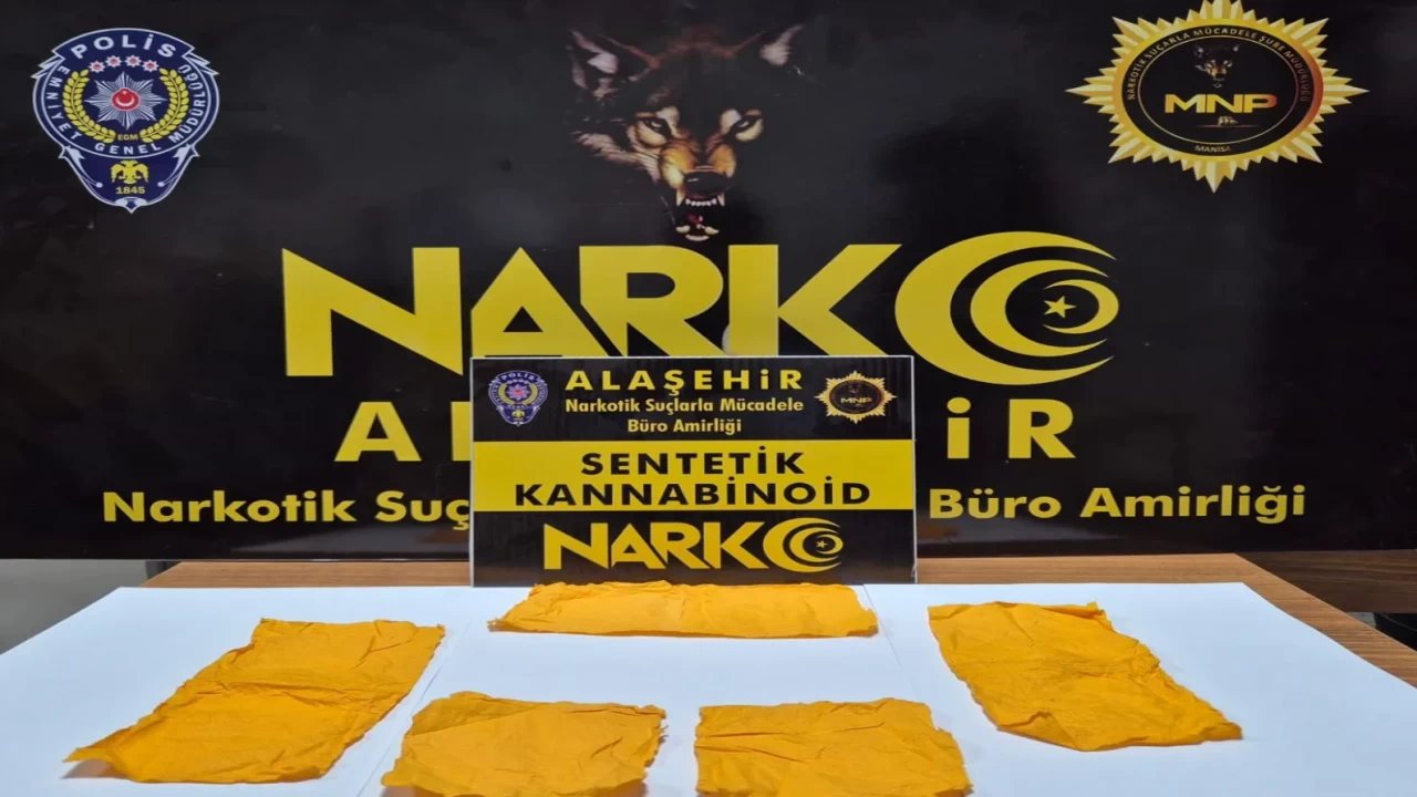 Manisa'nın Alaşehir ilçesinde, Narkotik Suçlarla Mücadele ekipleri, bir yolcu otobüsünü rutin kontrol amaçlı durdurdu. Araçta yapılan aramada, şüpheli D.D.'nin üzerinde 5 parça halinde, peçeteye emdirilmiş 3 bin 40 içimlik sentetik uyuşturucu madde ele geçirildi.
