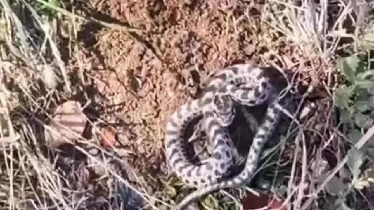 O anları cep telefonu kamerasıyla kaydeden Başkaya, yılanın ağır hareketlerle ormanlık alana doğru uzaklaştığını söyledi.